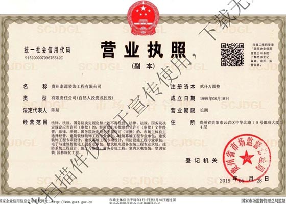 我公司成立于1999年08月18日,注冊資金人民幣2000萬元。企業(yè)經過不懈的努力,從當初的幾個人發(fā)展到現(xiàn)在幾百人的規(guī)模;由過去單一的裝飾施工企業(yè)發(fā)展為現(xiàn)在以建筑、裝飾、設計為主,兼為實業(yè)、建材、地產等多元化的股份制企業(yè),具有建設部頒發(fā)的建筑裝修裝飾工程專業(yè)承包壹級、建筑裝飾工程設計專項甲級、建筑幕墻裝飾工程專業(yè)承包貳級資質、建筑幕墻工程設計乙級資質、消防設施工程專業(yè)承包貳級、技防系統(tǒng)工程設計(B等)施工與維修、電子與智能化工程專業(yè)承包貳級、機電設備安裝工程專業(yè)承包貳級。公司2005年入中國建筑裝飾協(xié)會為會員單位,2011年至今為理事單位,2003年加入貴州省建筑裝飾協(xié)會為副會長單位,2019年當選為貴州省建筑裝飾協(xié)會會長單位。擁有一批優(yōu)秀的裝飾設計和施工人員,具有承擔大型工程的裝飾、設計能力。